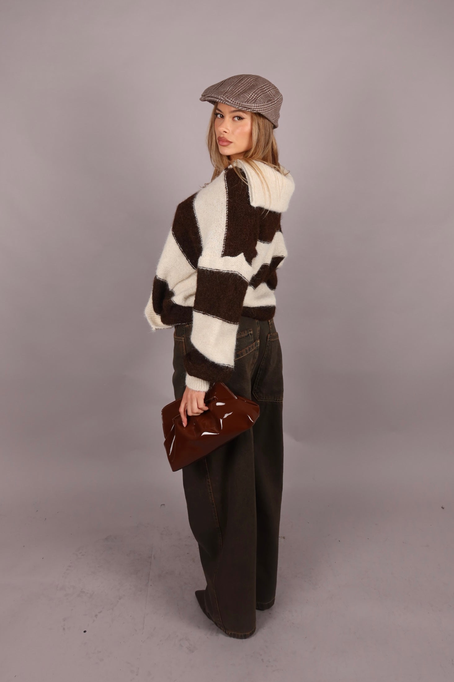 Cappello coppola a quadri in lana